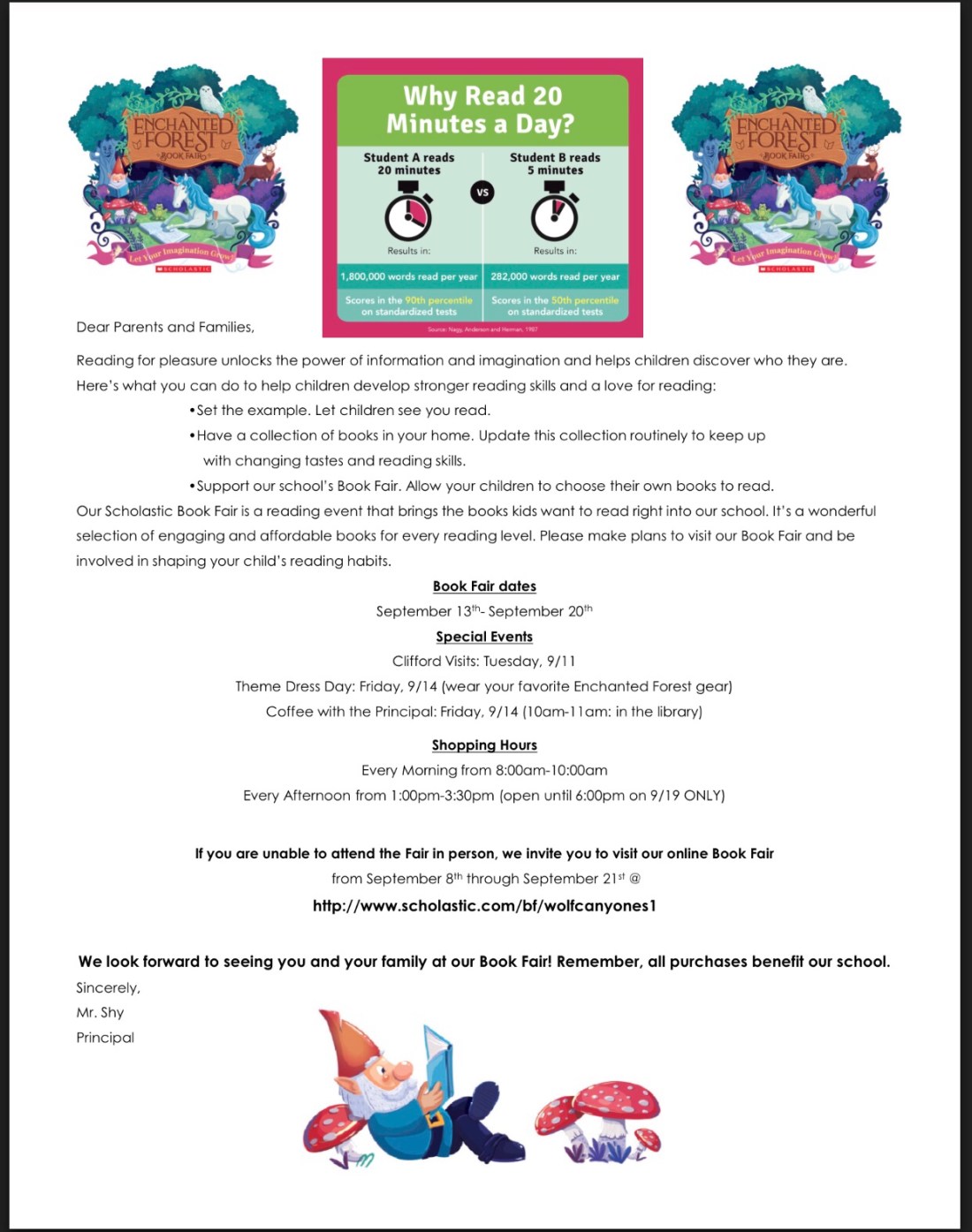 Scholastic Bookfair starts this Thursday September 13th. PTA still needs volunteers so if you are interested please click on link below