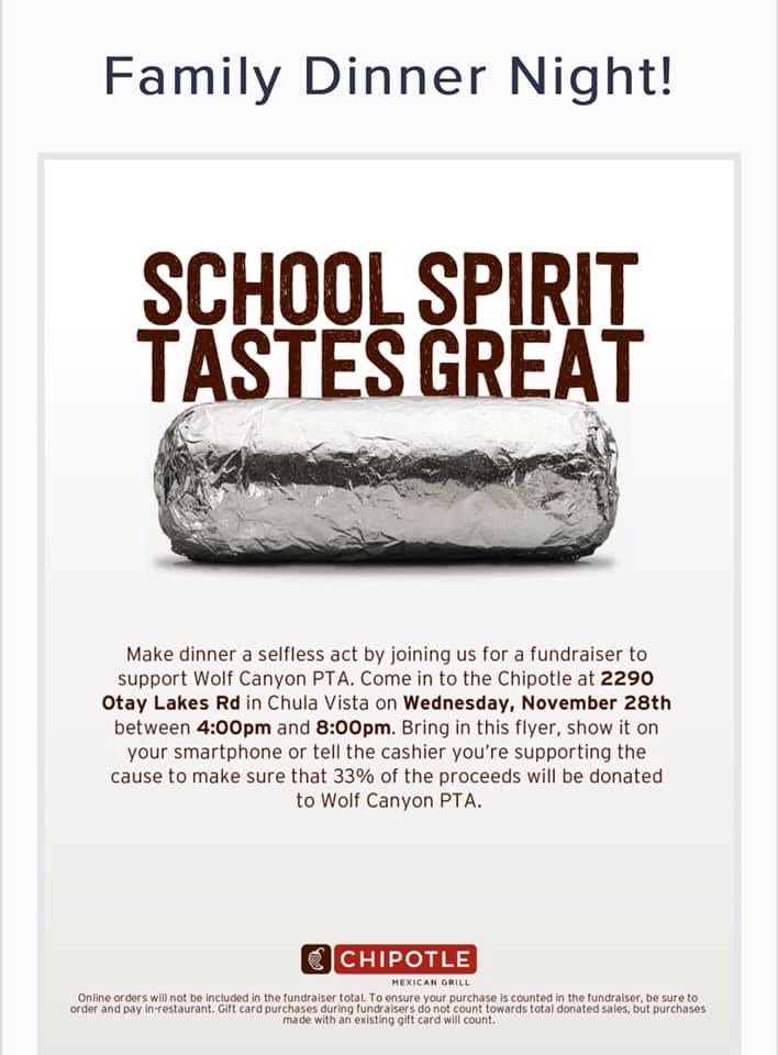 Nov 28th Fundraiser wolfcanyontimberwolvespta Uncategorized November 26, 2018November 26, 2018 Share this: Click to share on X (Opens in new window) X Click to share on Facebook (Opens in new window) Facebook More Click to share on LinkedIn (Opens in new window) LinkedIn Like Loading... Related Published by wolfcanyontimberwolvespta View all posts by wolfcanyontimberwolvespta Published November 26, 2018November 26, 2018