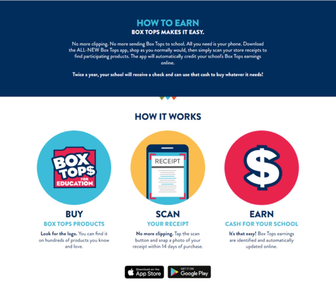 If you choose to cut them please send them in with your child to give to their teacher. This is being phased out by Box Tops so we recommend downloading the app. Plus it’s simple.