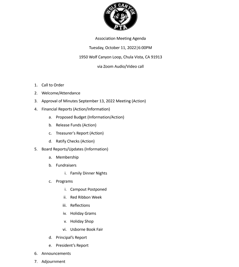 Welcome to the PTA blog for Wolf Canyon Elementary!