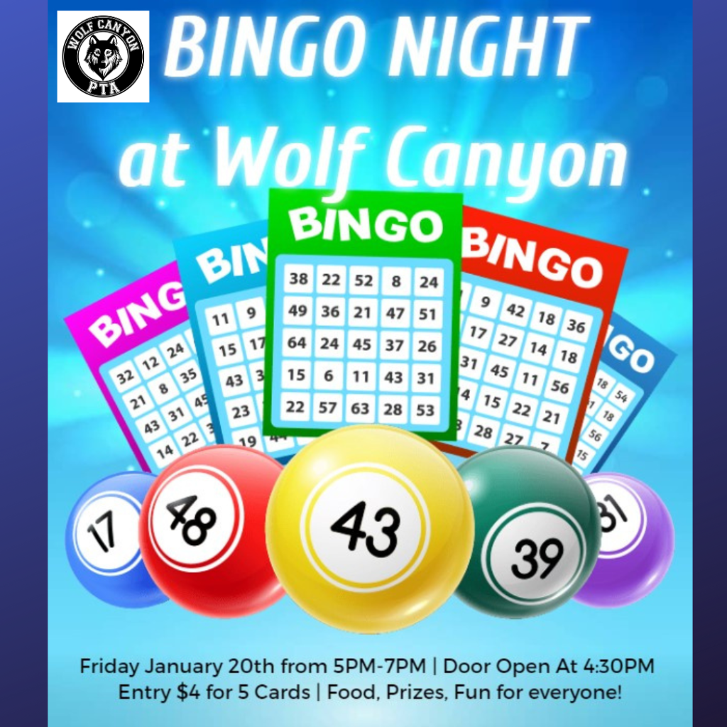 Mark your calendars to join us for Bingo Night at Wolf Canyon!