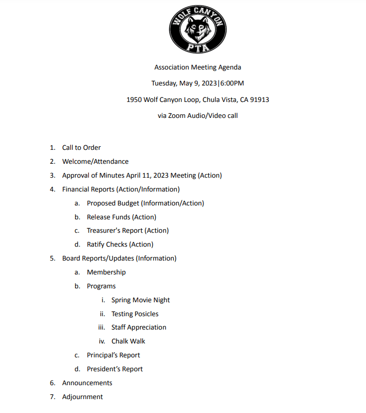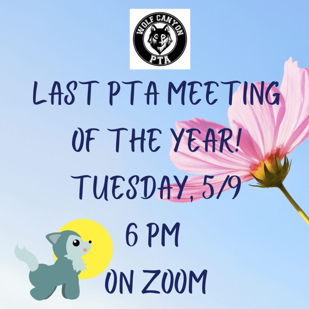 May General Meeting (Last one for this school year), 5/9! wolfcanyontimberwolvespta Uncategorized May 2, 2023May 7, 2023 Share this: Click to share on X (Opens in new window) X Click to share on Facebook (Opens in new window) Facebook More Click to share on LinkedIn (Opens in new window) LinkedIn Like Loading... Related Published by wolfcanyontimberwolvespta View all posts by wolfcanyontimberwolvespta Published May 2, 2023May 7, 2023