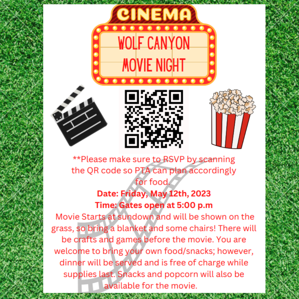 Come on out for our Spring Movie Night under the stars! Please RSVP with the QR code on the flyer that was sent home last week, or directly here: bit.ly/WCPTASpring23MovieNight