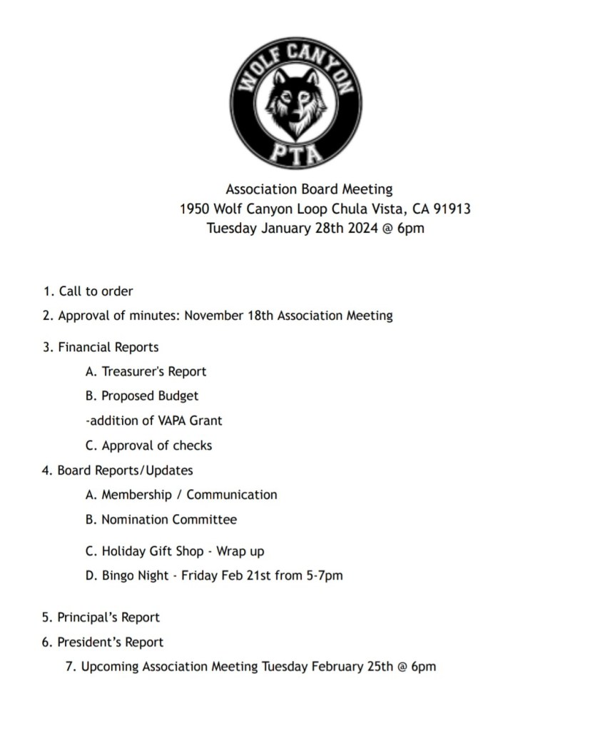 January’s meeting is important since we will be forming the nominating committee for next year’s Board. Please attend if you can and volunteer if you are interested for the nominating committee.