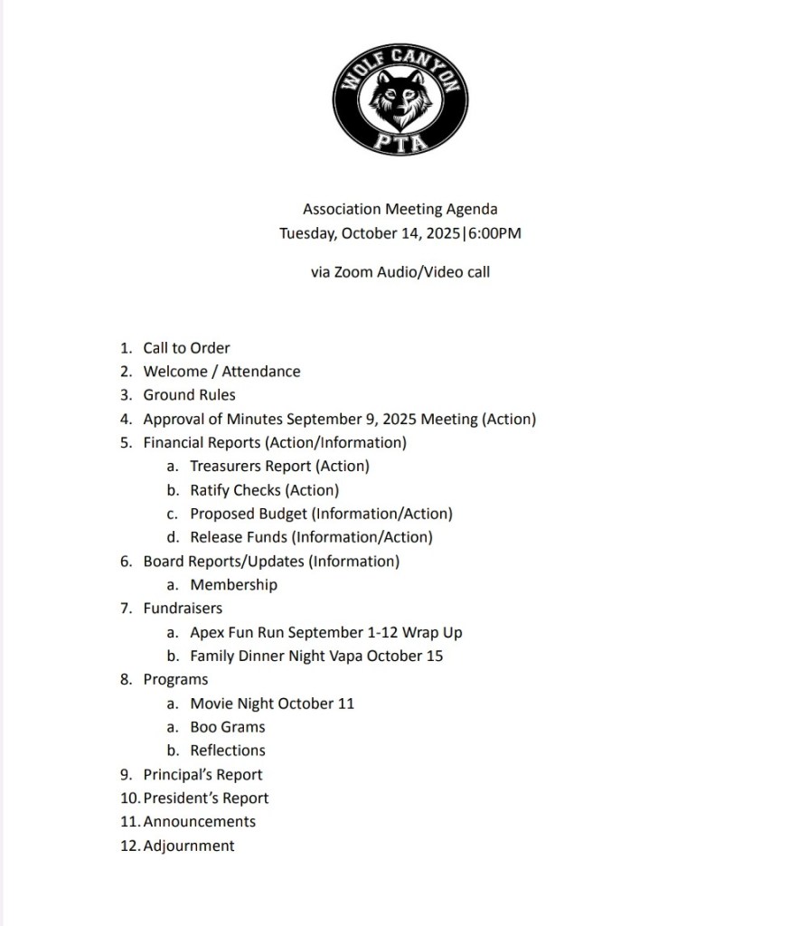 Welcome to the PTA blog for Wolf Canyon Elementary!
