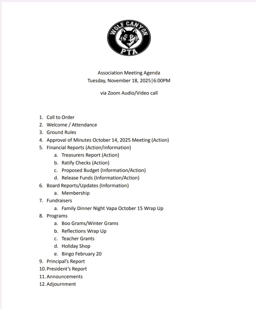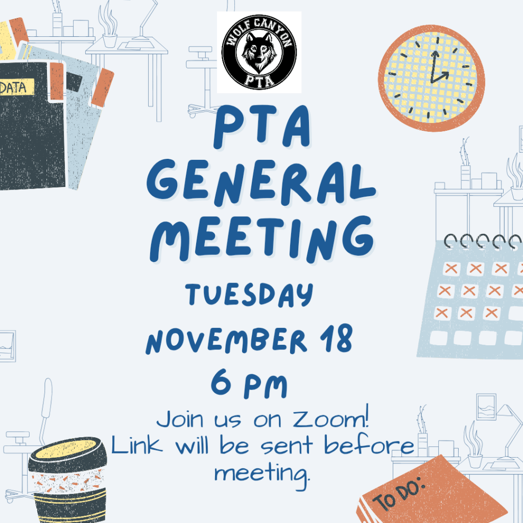 Please join us for our last PTA Meeting of 2025 this Tuesday, 11/18! Zoom link will be sent via SchoolMessenger.