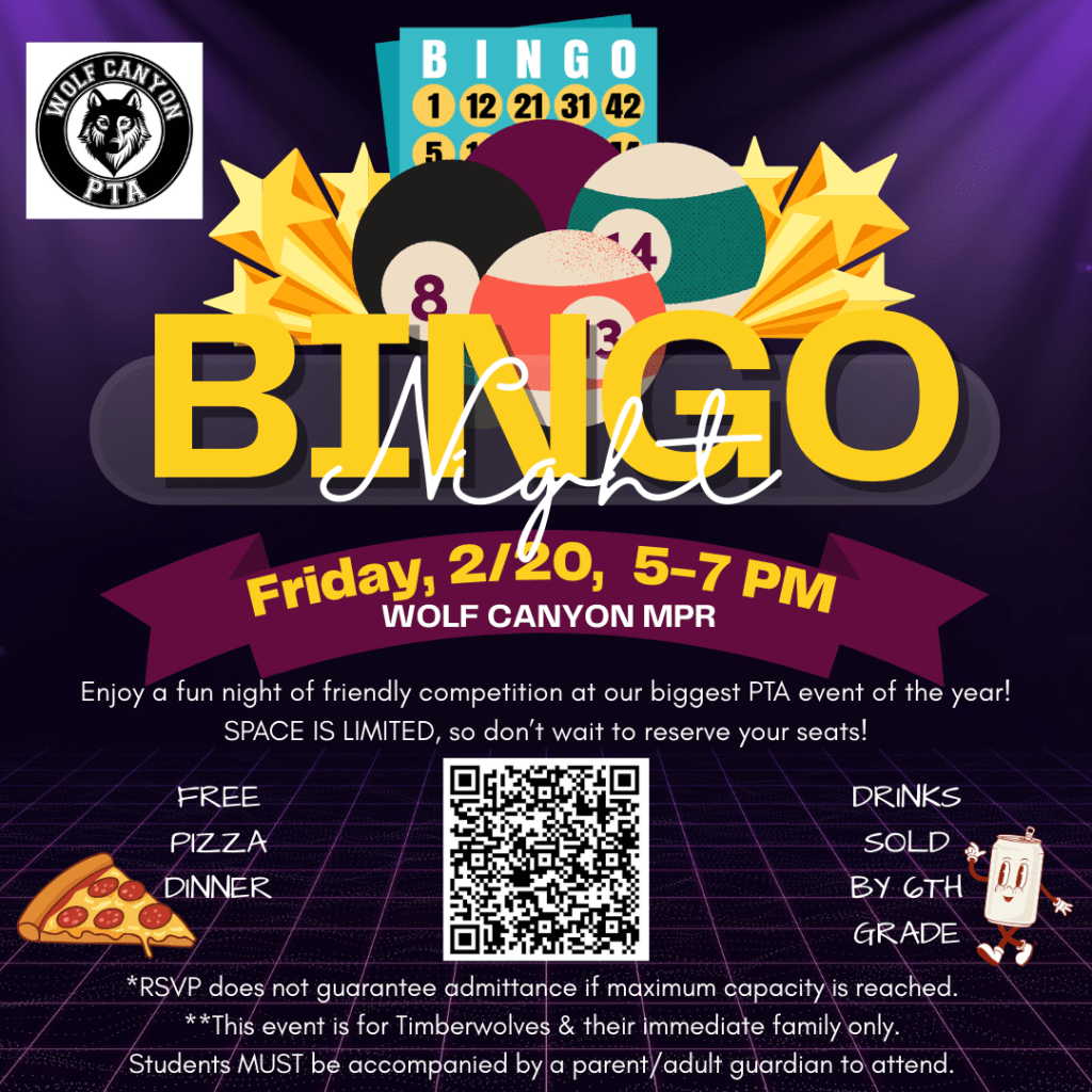Our most anticipated event of the year is coming up soon! Mark your calendars and reserve your seats for Bingo Night 2026 which will be happening on Friday, 2/20 from 5-7 PM at Wolf Canyon. Entrance is by RSVP ONLY and there are limited seats, so don’t wait to grab your spots!
