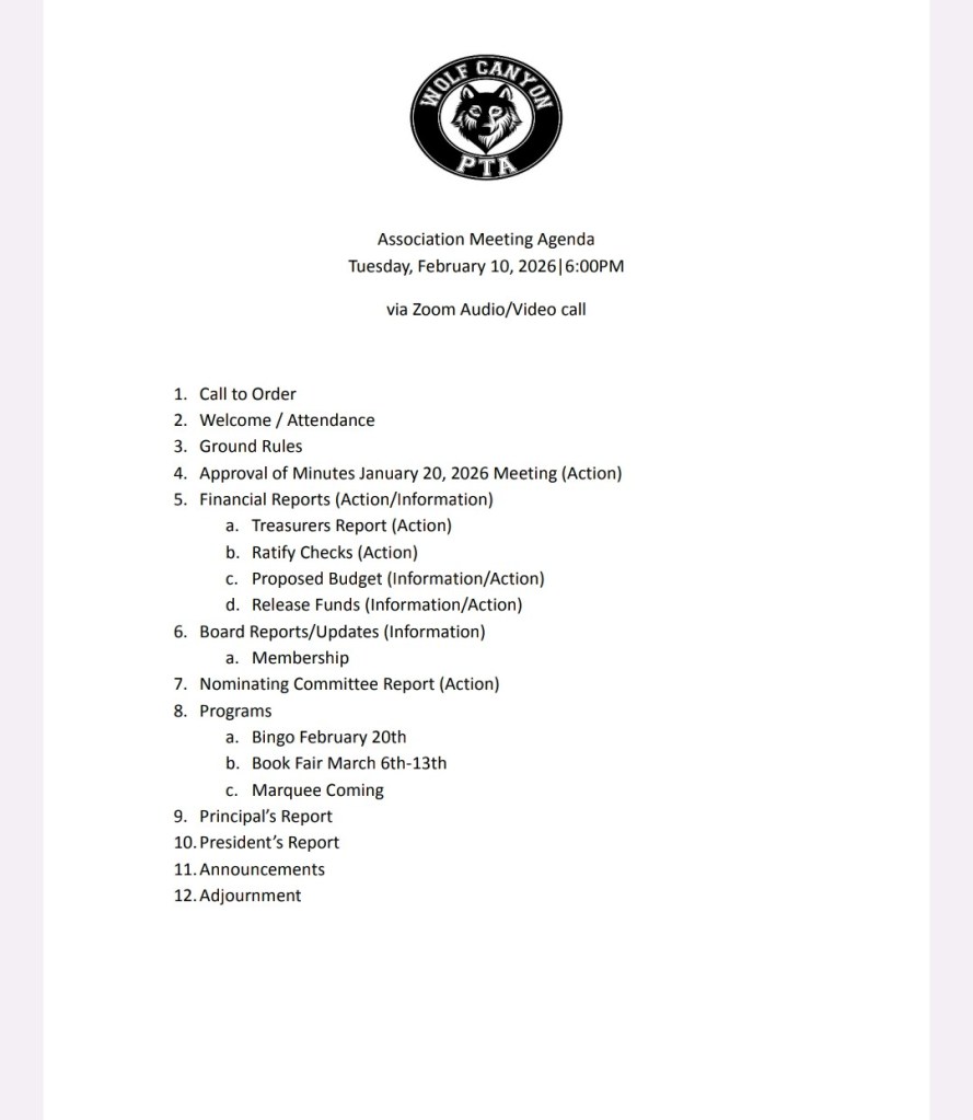 Welcome to the PTA blog for Wolf Canyon Elementary!